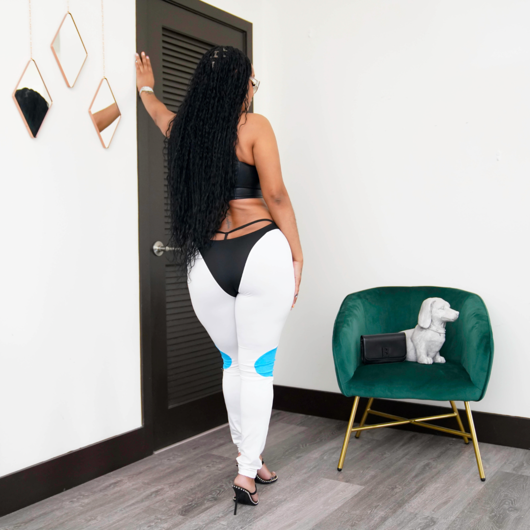 Stylish leggings crafted with inspiration from expert designers. Back panel features a visual illusion of a thong. The model stands at 5ft 3" and wears size Small.