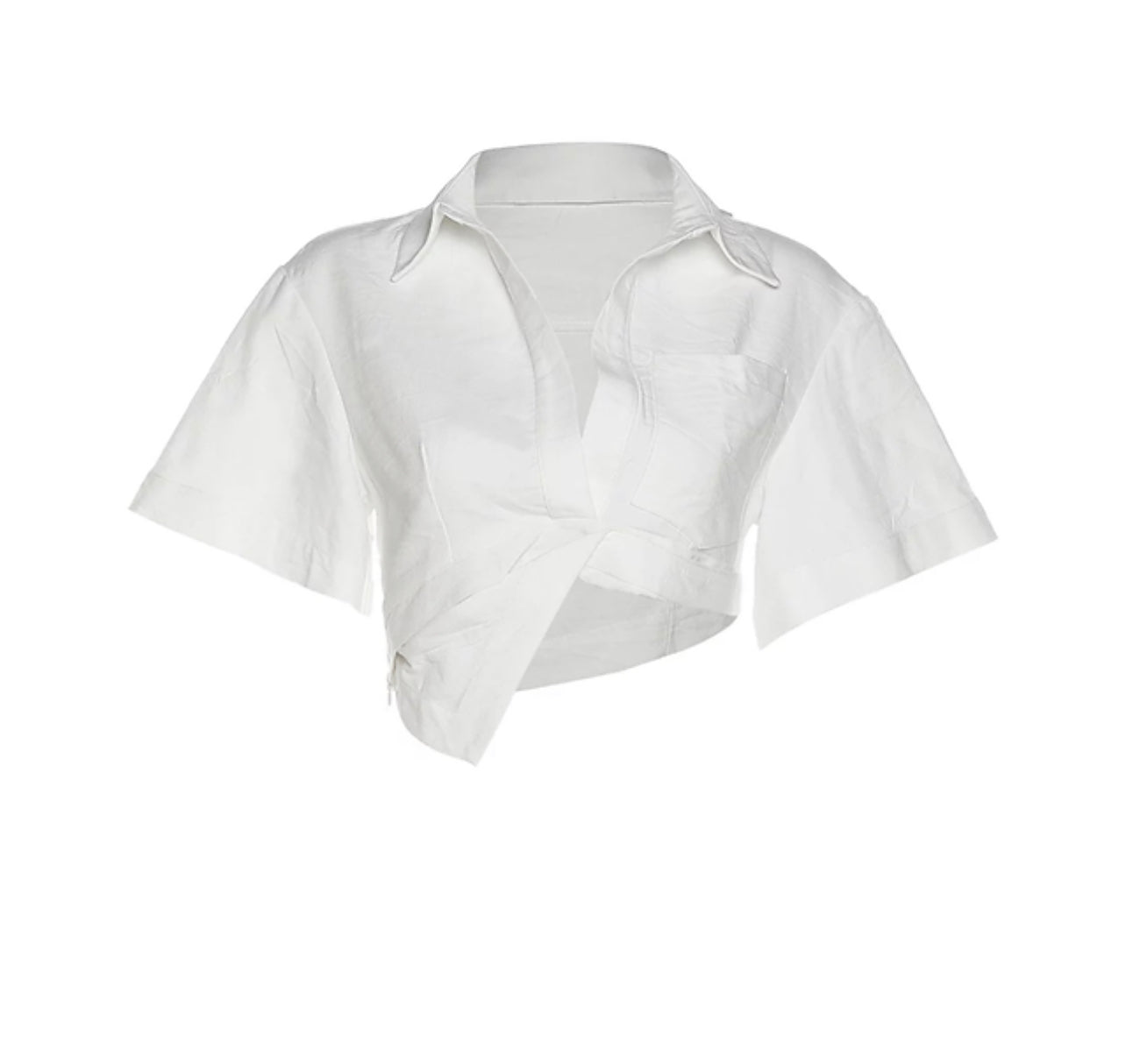 This button-up crop top is anything but ordinary. As seen paired with our 'Ricky Girl Shorts' and 'Hypnotize Tights' the model stands at 5ft 3" and wears size Medium.